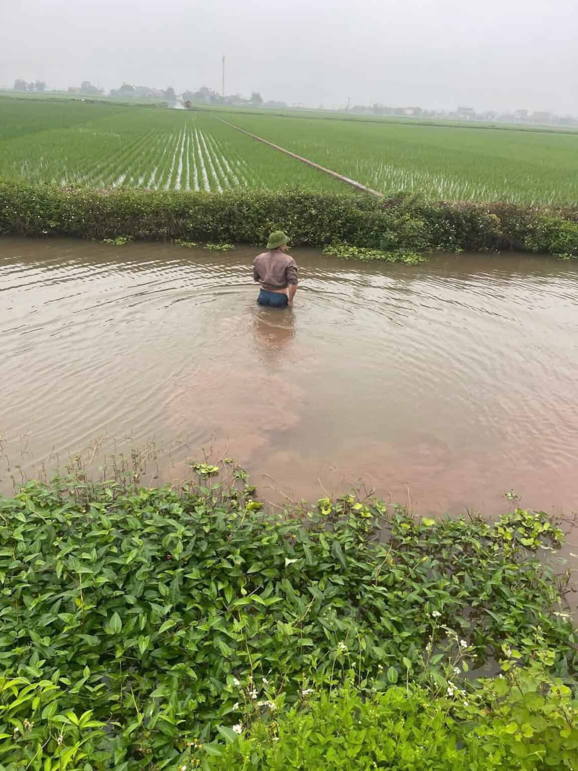 Thấy bất thường, người dân báo tin cho cơ quan chức năng. Sau đó, lực lượng chức năng cùng người dân tổ chức tìm kiếm và phát hiện một thi thể nam giới dưới mương nước.