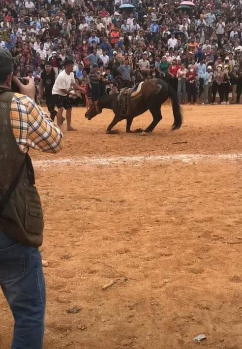 Hình ảnh buồn tại giải đua ngựa ở phiên chợ Tình, Tuyên Quang. Chú ngựa này đã gãy rời 2 chân