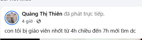 Đến khoảng 19h, bà phát hiện con vẫn ở trong lớp học đã tắt điện, cửa bị khóa trái.